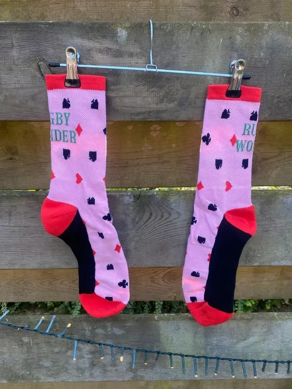 Alice in Wonderland Teacups 'n Cards | Knitted rugby socks | Medium-high